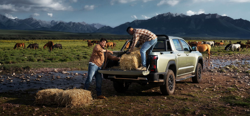 Габарити автомобіля (5330 × 1920 × 1865 мм) та колісна база 3230 мм забезпечують оптимальний баланс між місткістю та стабільністю на дорозі, а вантажне відділення розміром 1530 × 1620 × 515 мм і вантажопідйомність до 925 кг дозволяють ефективно перевозити широкий спектр обладнання та матеріалів. Незалежна передня підвіска на подвійних поперечних важелях і посилена задня ресорна конструкція гарантують витривалість і комфорт навіть при інтенсивній експлуатації. Доповнюють образ практичного і сучасного пікапа дискові гальма на всіх колесах, колісні диски R17 або R18 залежно від комплектації та максимальна швидкість до 150 км/год, що дозволяє впевнено почуватися як у міському потоці, так і під час міжміських поїздок.